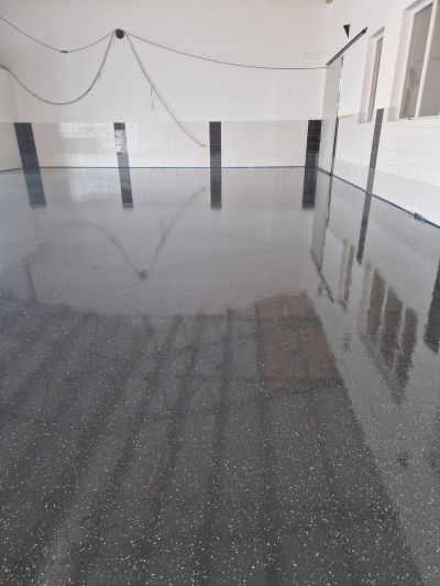 Wir können Beschichtungen. Wir haben die 450qm Verkaufsfläche des Autohaus Rakel mit Remmers Zweikomponenten-Beschichtung inkl. Beflockung neu erstrahlen lassen. Den Aufschlag zum Projekt hat Pascal Lenk von LO-Lenk's Oberflächentechnik mit dem Kugelbestrahlen der Fläche gemacht. Anschließend wurden verbliebene Risse verharzt und die Fläche grundiert, bevor endlich die Zweikomponenten-Beschichtung aufgetragen wurde. Abschließend wurde die Fläche mit einer rutschhemmenden Remmers ST 100 Kopfversiegelung finalisiert.